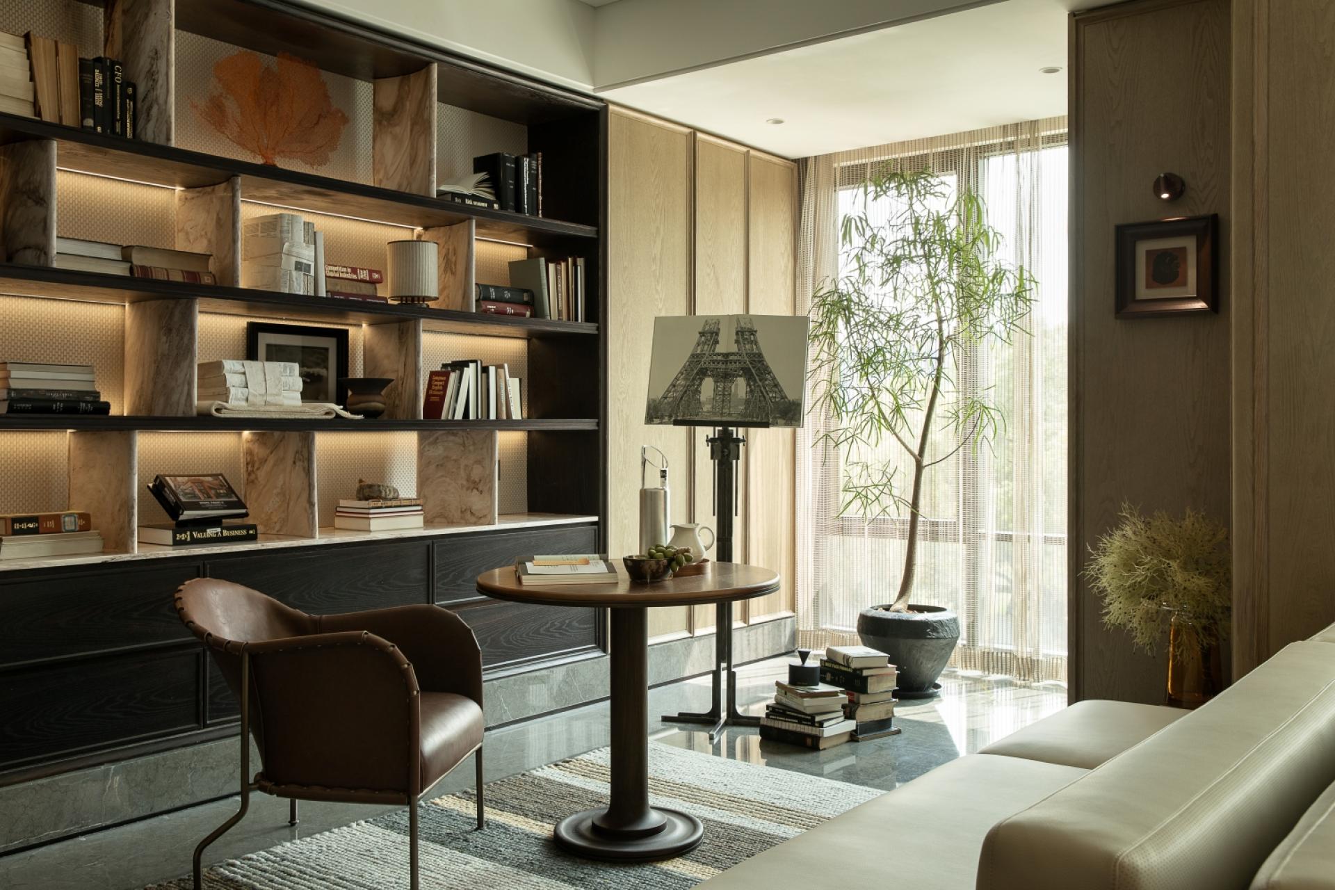 Inspired by “the meaning of travel”, the designer frames this flat as an eclectic vessel for time-wanderers. An LDKB+X layout spins a seamless loop of discovery. Art objects in the foyer mark the ritual of return; warm timber and a marble pendant lamp stage intimate dinners. A full-height bookcase in the study swallows a library’s worth of journeys, while a lounge nook and mini-bar offer quiet pauses for body and mind.