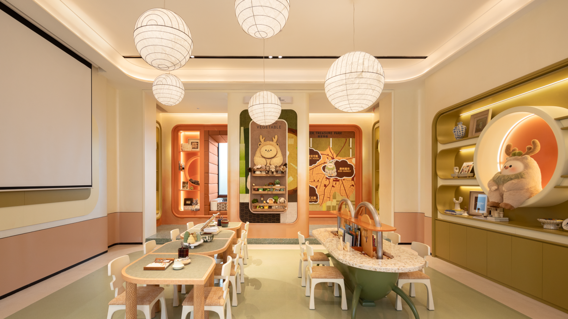 A French-profile cabinet in the entry quietly sets the tone for order; the sweeping living area is washed in muted tints. Cloud-like sofas and a metal coffee table strike a poised Parisian balance. Over the dining zone, a marble chandelier pools gentle light. The daughter’s room is a pastel playground; the parents’ retreat speaks in soft, caring neutrals. Study and master suite connect to form a private realm for thought and rest.