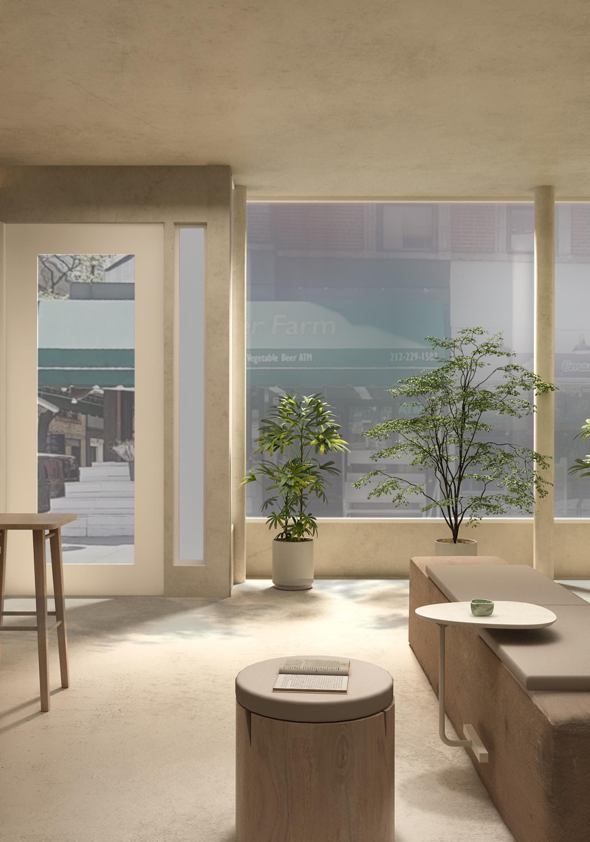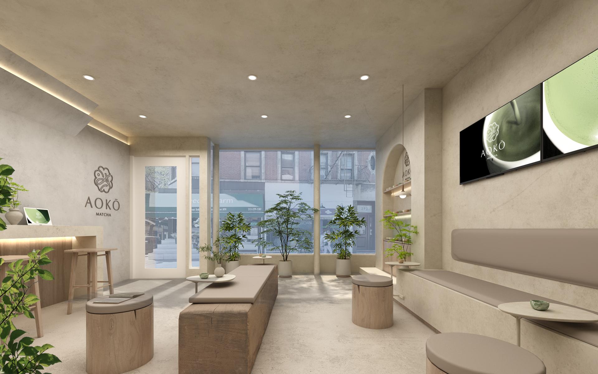 Located in Brooklyn, Matcha Gradient is a Japanese-inspired café that transforms the sensory experience of tasting matcha into spatial form. The brand’s concept explores five levels of matcha intensity, mirrored in a gradual color transition—from light green tones at the entrance to deeper hues near the bar—creating a journey of both flavor and