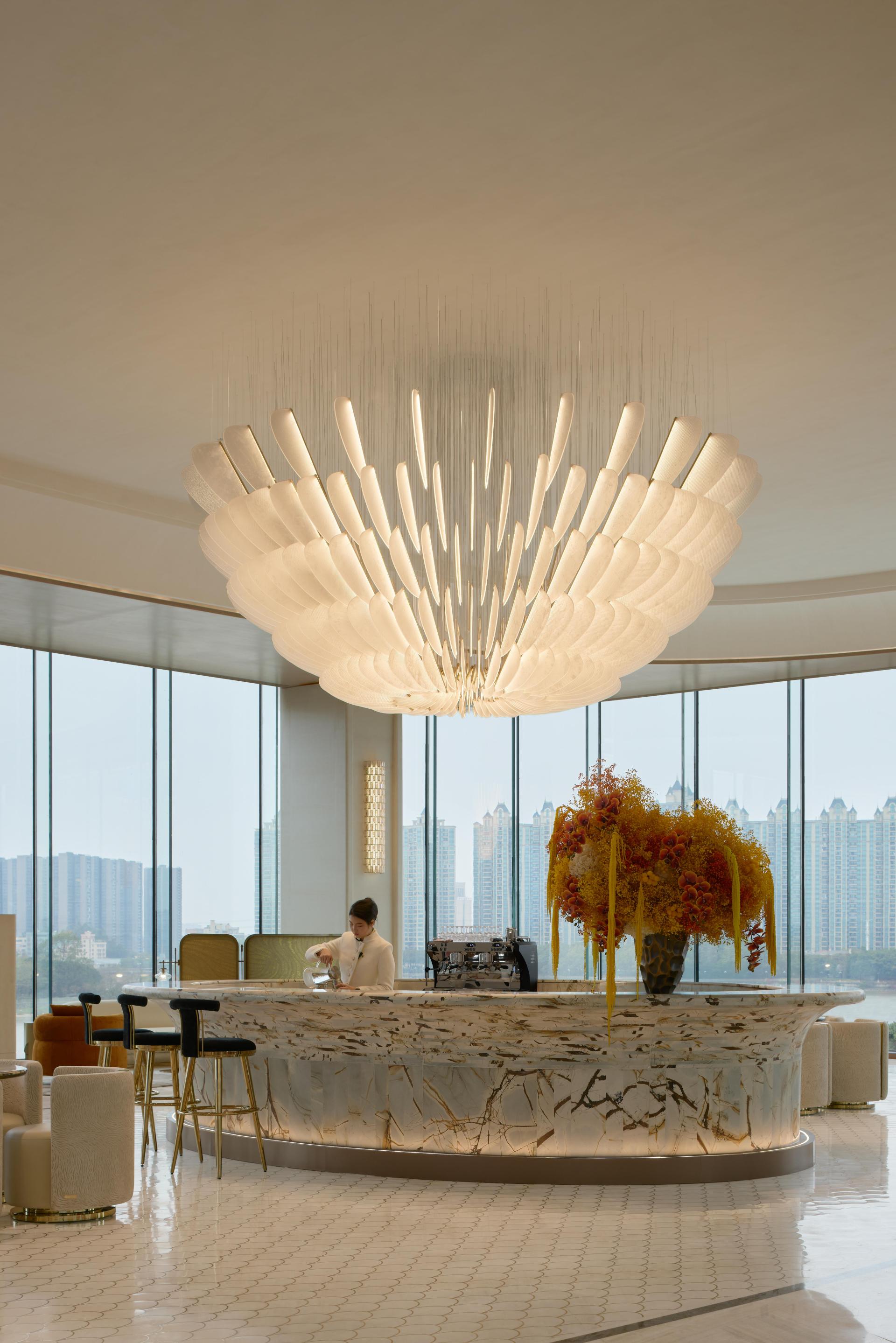 The sales circulation unfolds through five sequential chapters—Tracing the River, Reflecting Clouds, Dynamic Currents, Floating Journey, and Restful Haven—guiding visitors from arrival and interaction to relaxation and emotional engagement. A multi-sensory design strategy forms the foundation of the project, combining stone, wood, leather, and metal with curated art installations, bespoke lighting, floral compositions, am-bient music, and a customized scent system to create an immersive spatial experience.
